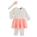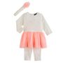 Cet ensemble bébé fille associe une robe en molleton, un legging et un bandeau pour les cheveux : les mamans l'adorent ! On aime : le bas de la robe esprit tutu. La robe, effet 2 en 1, est réalisée en molleton, elle possède un col rond et des manches longues, on note l'ouverture pratique pressionn