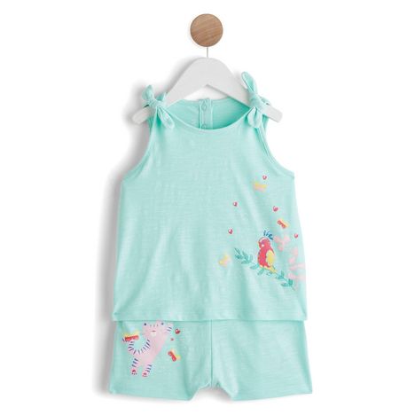 Ensemble short + t-shirt manches courtes oiseaux bébé fille