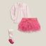 Allure 100% fille pour bébé avec cet ensemble sous-pull, jupe et collants. Agréable à porter. Sous-pull avec ouverture pressionnée à mi-dos, col montant, manches longues, jeu de fronces, motif avec petites touches pailletées. Jupe à volants, taille élastiquée ornée d'un noeud, volants doubles fixés