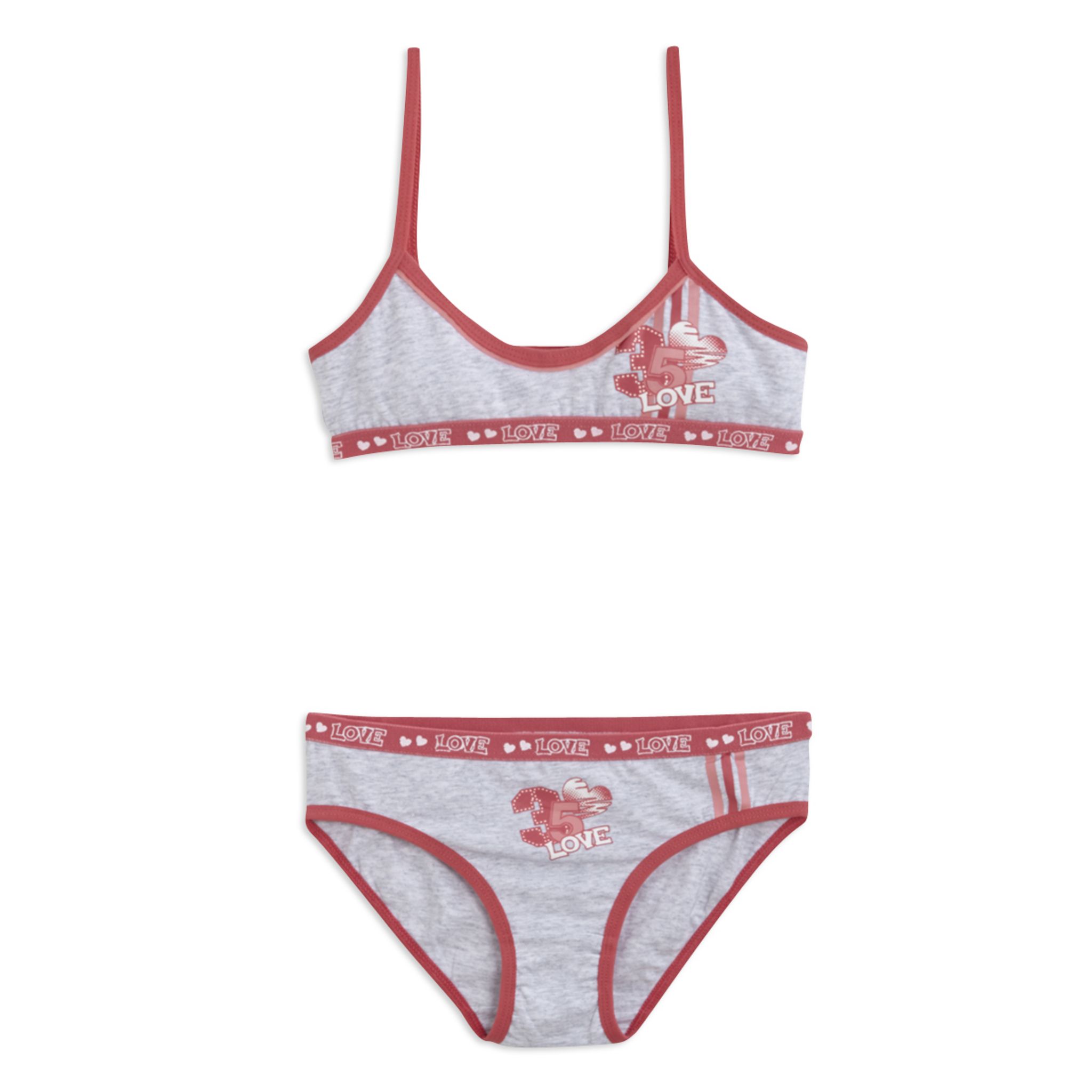 On aime cet ensemble brassière et slip fille, pratique et confortable ! Matière facile et agréable à porter. Brassière avec bretelles fines et inscriptions imprimées. Slip fille assorti avec taille élastiquée et fond doublé. Cet ensemble sous-vêtements fille se lave en machine à 40°.