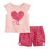 Bébé sera adorable cette saison dans cet ensemble tee-shirt et short ! Confortable. T-shirt : manches animées de petits volants, col rond, coeur appliqué et broderie fantaisie sur le devant, pas d'étiquette dans le cou pour un confort total. Short rayé : matière légère, taille et base élastiqués, pe