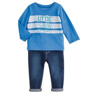 Les mamans craquent pour cet ensemble tee-shirt et jean bébé garçon 100% tendance ! Agréable à porter. T-shirt : col rond en bords-côtes, manches longues, impression fantaisie sur le devant, tampon au col pour plus de confort. Jean : effet délavé, taille ajustable de l'intérieur par élastique et