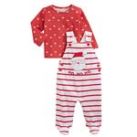 Cet ensemble salopette et tee-shirt bébé apporte une touche de magie supplémentaire aux fêtes de fin d'année ! Agréable à porter, toucher doux. Salopette à pieds : réalisée en velours, motifs rayures, bretelles et côtés boutonnés, animation Père-Noël et broderie fantaisie. Tee-shirt imprimé : 100