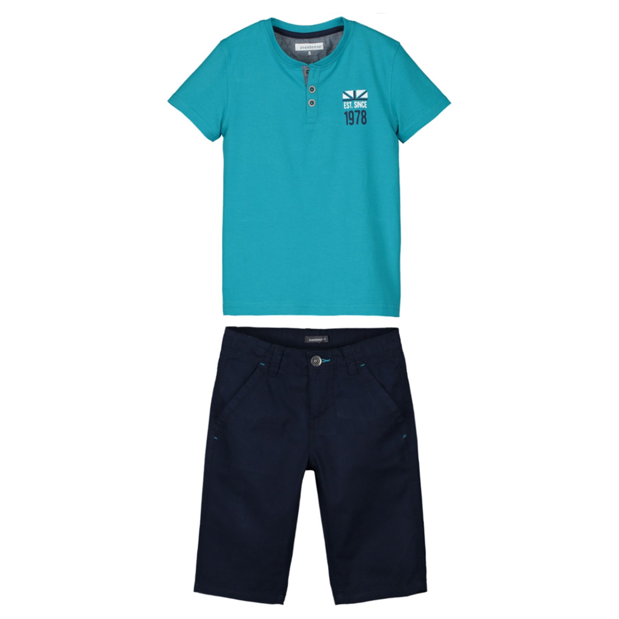 En savoir +Les garçons sont prêts pour les beaux jours avec cet ensemble tee-shirt et bermuda ! Agréable à porter. 100% coton. T-shirt : patte boutonnée, col rond, manches courtes, imprimé sur la poitrine, il n'y a pas d'étiquette dans le cou pour le confort. Bermuda : taille ajustable de l'intérieur par élastique et boutons, ceinture ouverte par bouton et zip, 2 poches sur le devant, 2 rabats cousus au dos. Cet ensemble garçon est lavable en machine à 40°.