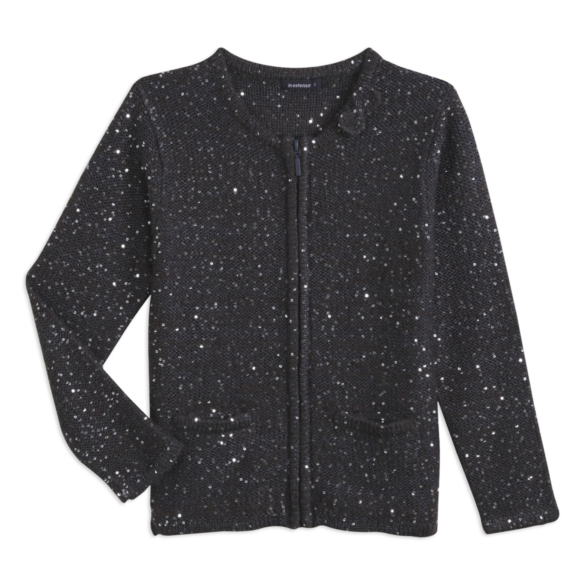 En savoir +Quelle idée brillante : un cardigan fille animé de sequins argentés ! Maille avec sequins brillants. Agréable à porter. Ouverture zippée sur le devant. 2 poches. Col rond, manches longues. Ce cardigan fille est lavable en machine à 30°.