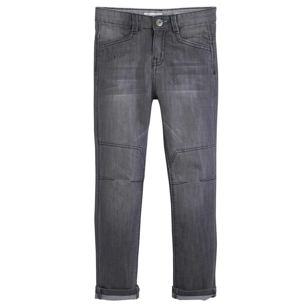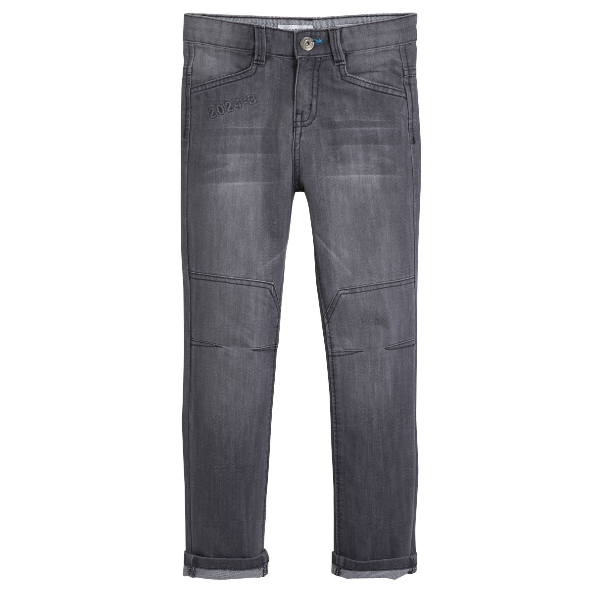 Look mode pour les garçons avec ce jean aux détails tendance ! Denim agréable à porter, avec effet légèrement délavé par endroit. Le jean possède une taille ajustable par un élastique et des boutons intérieurs. Ouverture par bouton et zip. 4 poches. On note les animations brodées et les découpes