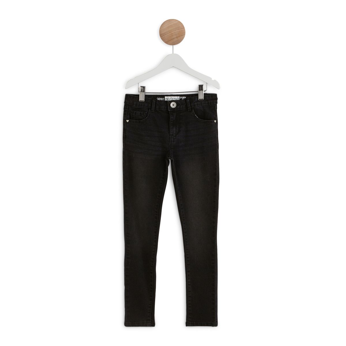 En savoir +Difficile de résister à ce jean slim en denim brut, véritable pièce stylée de la saison. Confortable à porter, ce modèle skinny séduit par ses atouts mode et possède une ligne 5 poches, une fermeture par zip et bouton métal et des œillets en forme de cœurs pour se combiner facilement avec des petites pièces tendance !