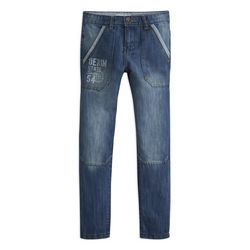 Ce jean, avec ses détails fantaisie, offre un style ultra décontracté aux garçons ! Denim confortable. Aspect légèrement délavé par endroits. Elastique et boutons intérieurs pour une taille bien ajustée. Ouverture par un bouton et un zip. 4 poches. Jeu de surpiqûres et de découpes. Ce jean garçon es