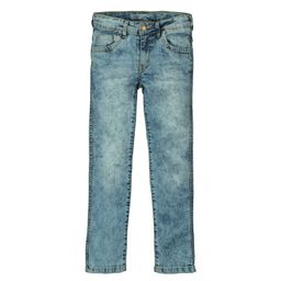 La finition délavée de ce jean slim plaira aux garçons qui suivent la tendance ! Denim agréable à porter. Pratique : ceinture à passants réglable de l'intérieur par élastique et boutons. Ouverture par bouton et zip. 6 poches. Jeu de surpiqûres. Ce jean slim garçon est facile d'entretien.