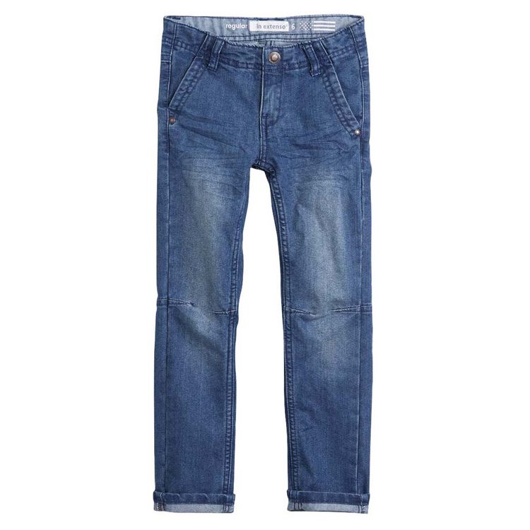Look décontracté pour les garçons avec ce jean droit ! Confortable. Aspect délavé et plis marqués par endroits. Ceinture à passants réglable de l'intérieur par élastique et boutons. 3 poches. Revers non cousus en bas de jambe. Jeu de découpes. Surpiqûres fantaisie. Ce jean coupe droite garçon est la