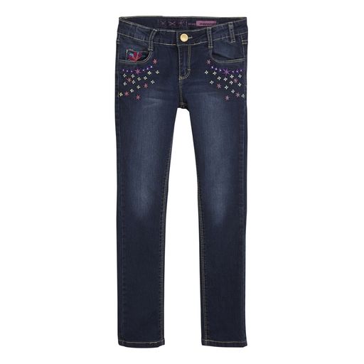 En savoir +Un jean skinny avec des fleurs brodées, ça plaît terriblement aux filles ! Denim stone, agréable à porter. Aspect délavé par endroits. Taille ajustable de l'intérieur par élastique et boutons. Ouverture par bouton et zip. 5 poches. Fleur brodée sur une poche au dos. Jeu de surpiqûres. Ce jean fille est lavable en machine à 40°.