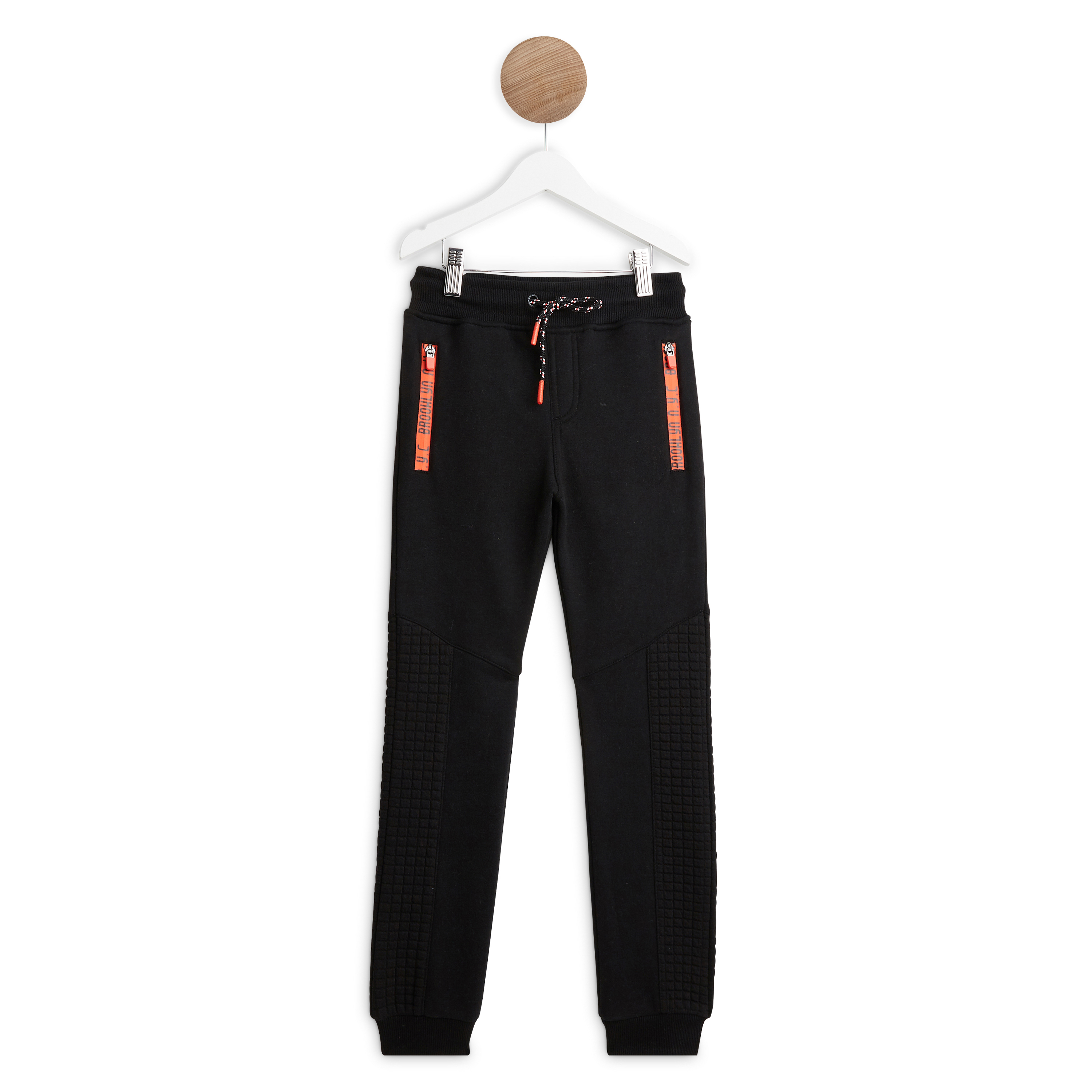 Pour le sport ou pour un style décontracté, les garçons craquent sans hésiter pour ce pantalon jogging, avec son style fantaisie. Il possède une taille élastiquée avec lien de resserrage pour un confort parfait. Le jogging garçon possède 2 poches zippées à l’avant et des bas de jambes élastiqu