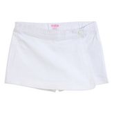 Pour toutes les filles qui hésitent entre le short et la jupe : voici la jupe short ! Matière confortable. Look de jupe devant et short au dos. Taille réglable de l'intérieur par élastique et boutons. Ouverture par une pression et un zip. Empiècement jupe fermé par 1 pression. 1 poche au dos orn