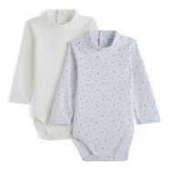 Confortables et chauds, ces 2 bodies à manches longues sont parfaits pour accompagner le quotidien de bébé ! On apprécie le col roulé avec ouverture pressionnée pour faciliter le passage de la tête. Les bodies bébé possèdent un entrejambe pressionné et sont conçus en coton doux.