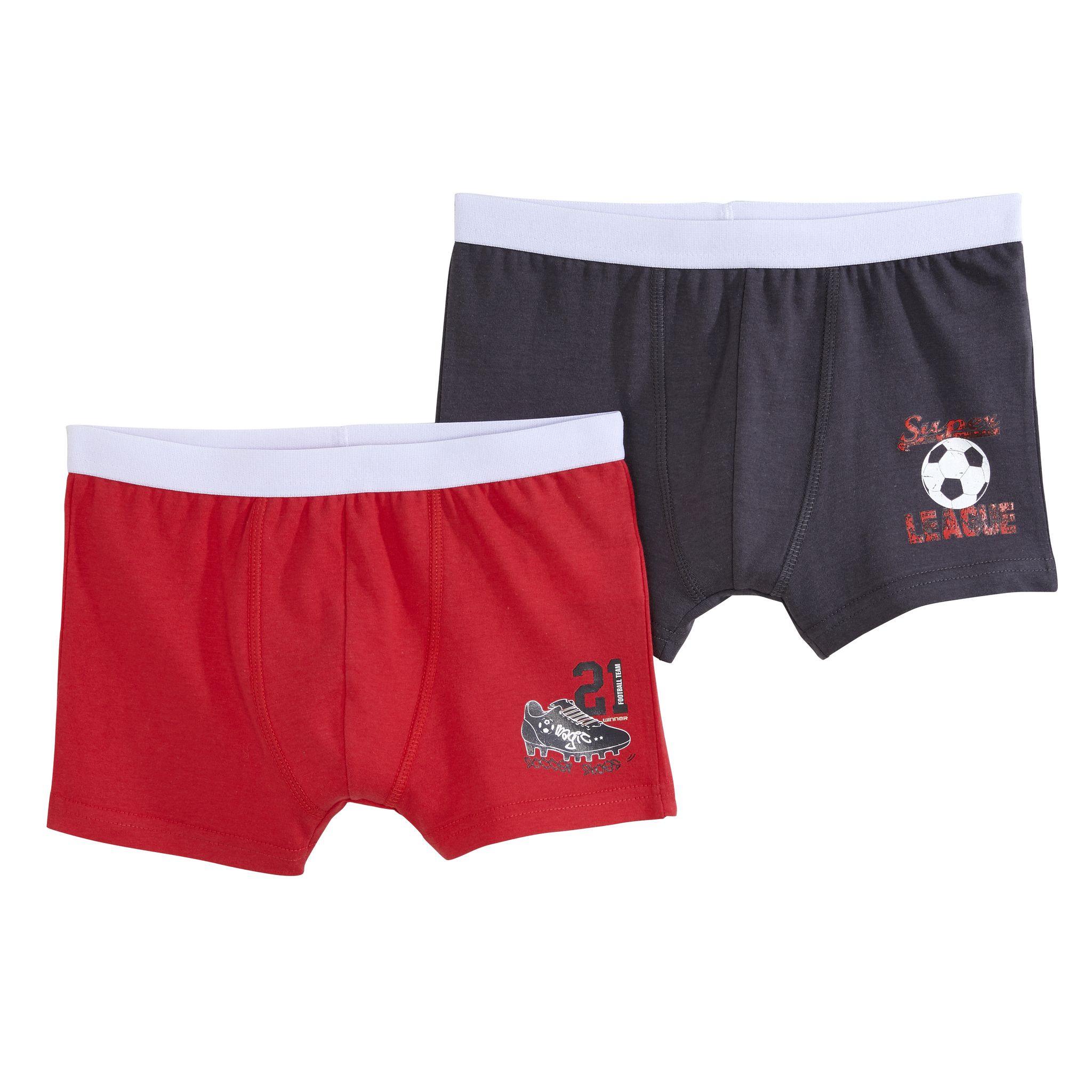 Les garçons ont besoin de sous-vêtements doux et confortables comme ceux-ci. Lot de 2 boxers garçon. On aime : le thème "football". Ils sont réalisés en coton. Taille élastiquée. Coutures renforcées sur le devant. Motifs fantaisie. Ce lot de 2 boxers garçon est lavable en machine.