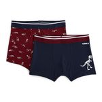 On associe douceur et confort avec ce lot de 2 boxers en coton stretch pour garçon ! On remarque : les imprimés dinosaures fantaisie qui apportent une note tendance. Ces boxers garçon présentent une taille élastiquée contrastée assurant un maintien sans serrer et sont doublés devant.