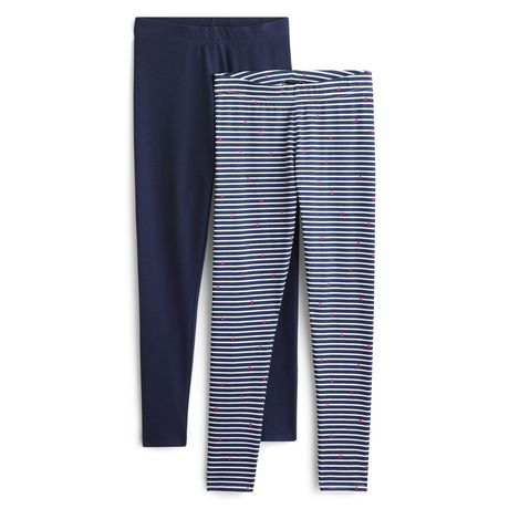 Ce lot de 2 leggings est parfait pour composer des tenues confortables et coquettes ! Il se compose d’un legging rayé parsemé de petits cœurs, et d’un legging uni bleu marine. Faciles d’entretien et très agréables à porter, ces leggings sont confectionnés en coton doux et ext