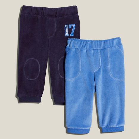 Allure sportive pour bébé avec ce lot de 2 pantalons ! Velours lisse très doux. Confortables. Taille élastiquée assurant un bon maintien. Jeu de surpiqûres. Bas de jambe élastiqués. Ce lot de 2 pantalons bébé garçon est lavable en machine.