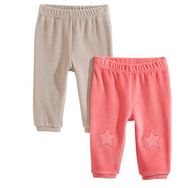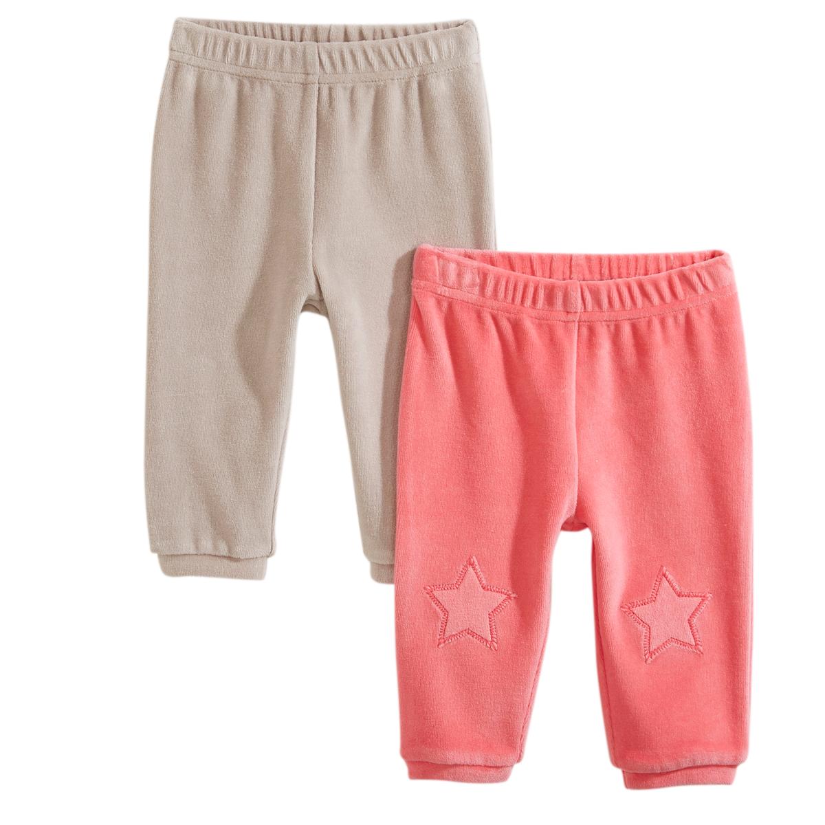 Pour de vrais moments de douceur, votre bébé va adorer le confort de ce lot de 2 pantalons en velours ! Matière douce et agréable. Taille et bas de jambe élastiqués. Un pantalon uni et un avec animation en forme d'étoile par jeu de surpiqûres sur les genoux. Ce lot de 2 pantalons bébé fille est l