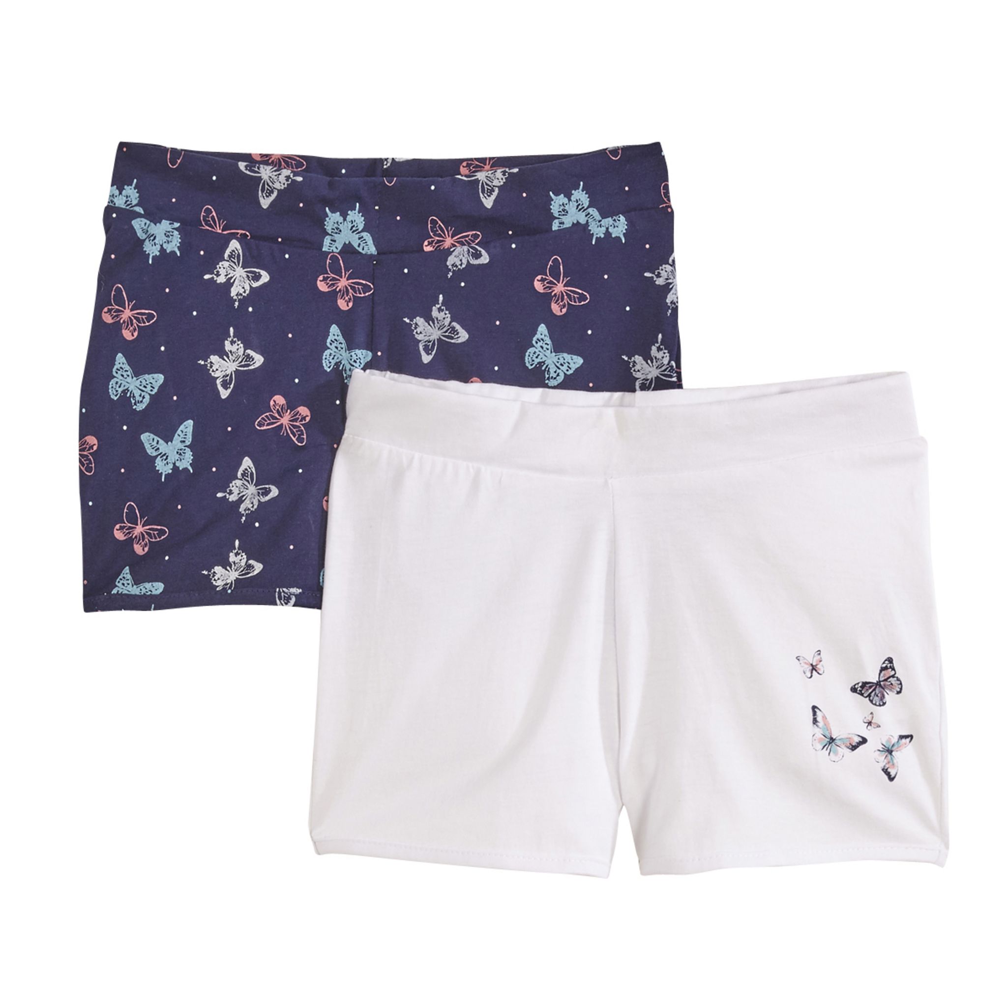 Lot de 2 shorts légers et tendance : pour les filles qui aiment avoir le choix ! Agréables à porter. Toucher doux. 1 short tout imprimé et 1 avec motif sur le devant. Taille élastiquée. Ce lot de 2 shorts fille est lavable en machine à 40°.