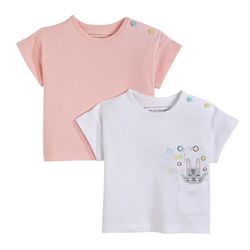 A mixer avec toutes les jupes et shorts de bébé : le lot de 2 tee-shirts bébé fille à manches courtes. Agréables à porter. Toucher doux. Col rond, ouverture pratique par boutons fantaisie sur l'épaule. Ce lot associe un t-shirt uni et un t-shirt avec une poche et un imprimé ludique sur le devant.