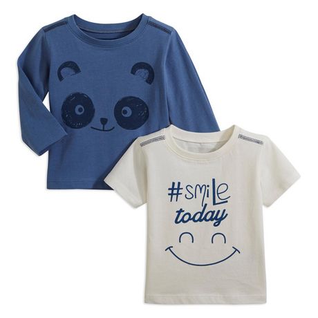 Lot de 2 tee-shirts bébé garçon : à porter en fonction de la météo, c'est pratique ! Agréables à porter. 100% coton. Col rond. 1 à manches courtes et 1 à manches longues. Imprimé fantaisie sur le devant. Jeu de surpiqûres au niveau des épaules. Il n'y a pas d'étiquette dans le cou pour un co