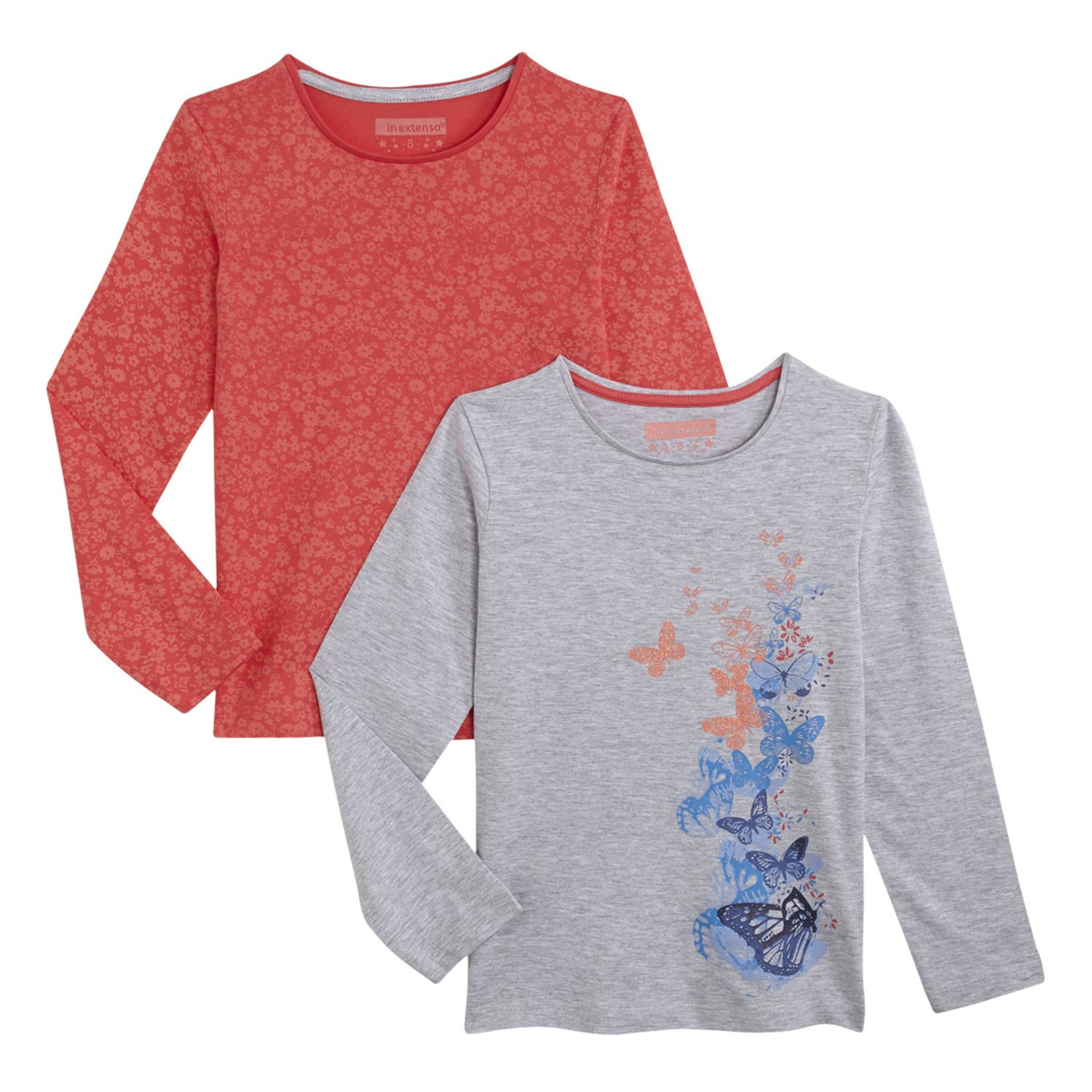 Quel tee-shirt choisir aujourd'hui ? Celui à l'imprimé fleuri ou celui décoré d'un imprimé papillons à paillettes ? Lot de 2 tee-shirts fille à manches longues. Jersey agréable à porter. Col rond, il n'y a pas d'étiquette dans le cou pour le confort. Lavables en machine à 40°.