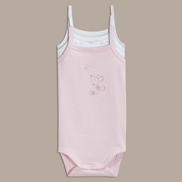 On ne peut que craquer devant ce lot de 3 bodies bébé fille à fines bretelles In Extenso. 100% coton pour le confort. Pressions à l'entrejambe pour faciliter le change. Un body uni côtelé, un body avec motif sur le devant et un body tout imprimé. Ce lot de 3 bodies été bébé est lavable en machin