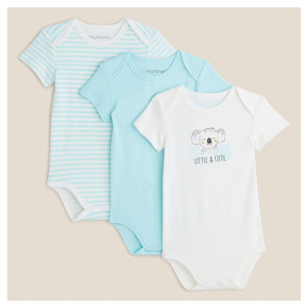 En savoir +On offre confort et douceur à bébé avec ce lot de 3 bodies manches courtes ! Le lot contient : un body uni, un body imprimé koala sur le devant et un body imprimé rayé. Les bodies possèdent une encolure américaine et disposent d'une ouverture pressionnée à l'entrejambe pour un enfilage facile.