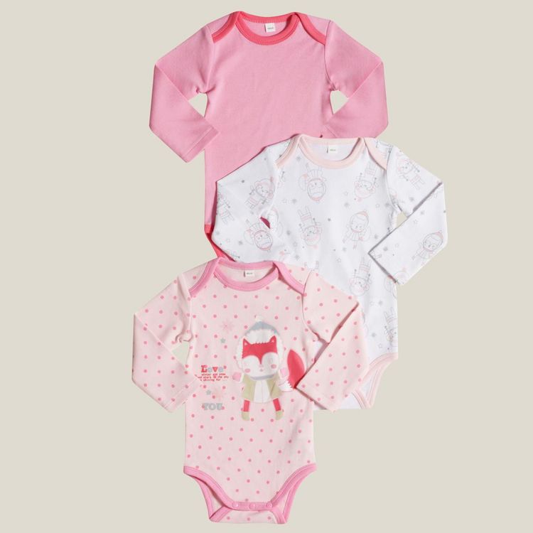 Ce lot de 3 bodies bébé plaira par leur style 100% fille. Pur coton, agréables à porter et doux. Emmanchures américaines très pratiques. Manches longues. Pressions à la base. Ce lot de 3 bodies bébé fille est lavable en machine à 40°.