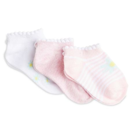 En savoir +Conçues en coton biologique, ces 3 paires de socquettes mettent de la fantaisie dans les tenues de nos petites princesses ! On fond pour la finition en point cocotte à la cheville ! Le lot est composé de 1 paire de socquettes unies, d’une paire à imprimé marguerites, et d’une paire rayée à motif placé hyper tendre.