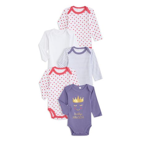 On ne résiste à ce lot 5 bodies bébé fille ! On adore le thème "princesse". Agréables à porter, toucher doux. 100% coton. Emmanchures américaines : c'est pratique pour habiller bébé. Entrejambe pressionné. Imprimés variés. Ce lot de 5 bodies bébé à manches longues est lavable en machine à 40°.