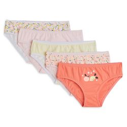 En savoir +On craque pour ce lot de culottes assorties composé de 4 culottes imprimées de délicieux fruits, et d’une culotte unie ! Le détail en plus ? Elles disposent d'une jolie finition croquet élastique. Ces culottes possèdent un fond doublé.