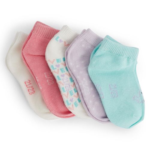 Parfaites pour compléter tous les styles de bébé fille, ces 5 paires de socquettes procurent confort et douceur au quotidien ! L'ensemble contient : 3 paires unies et 2 paires à imprimé fantaisie. Pour un bien-être parfait, ces socquettes possèdent un bord élastique qui maintient sans serrer.