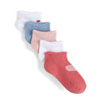 On réchauffe les petons de bébé fille avec ce lot de 5 paires de socquettes trop mignonnes ! Le lot contient : 2 paires à imprimé fantaisie et 3 paires unies. Avec leurs bords festonnés, ces socquettes sont parfaites autant avec les looks du quotidien que les looks habillés. Elles possèdent un bord élastique qui maintient sans serrer.