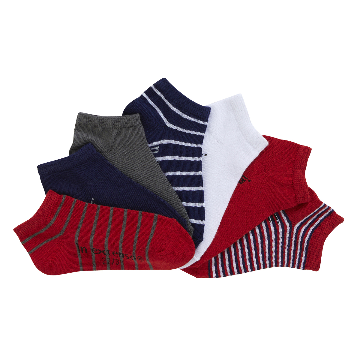 En savoir +Essentielles dans le dressing des garçons : le lot de 7 paires de socquettes garçon. Elles sont douces et confortables. Les bords maintiennent sans serrer. Composition : 74% coton, 22% polyester, 2% polyamide, 2% élasthanne / 72% coton, 18% polyester, 8% polyamide, 2% élasthanne. Ce lot de 7 paires de socquettes garçon comprend 3 paires à motifs et 4 paires unies.
