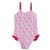 Les filles adorent ce maillot de bain 1 pièce au charmant imprimé fleuri ! Il s'adapte à toutes les silhouettes. On aime l'imprimé fleuri, les motifs légèrement en relief, les fronces et volants fantaisie. Forme pensée pour bouger et s'amuser en toute liberté dans l'eau. Fond doublé pour le con