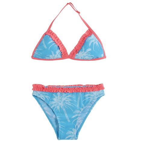 Un imprimé tropical, des volants fantaisie, des coloris d'été… ce maillot de bain fille 2 pièces fera fureur, c'est certain ! Agréable à porter. Haut : imprimé, forme triangle, lien ajustable à passer autour du cou, fixation à clipser dans le dos. Culotte de bain coordonnée : taille élast
