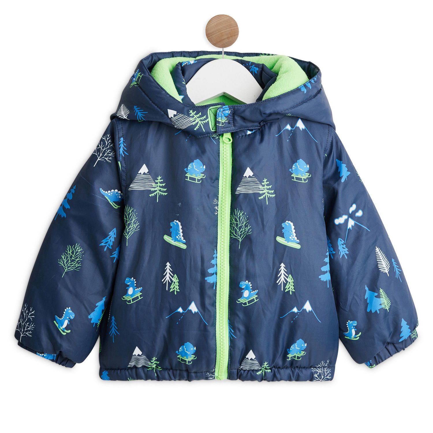 En savoir +Ce manteau de ski trop mignon va faire chavirer le coeur de bébé ! Grâce à sa doublure en polaire et sa capuche bien emboîtante fermée par scratch, la doudoune tient bien au chaud. Déperlante, elle dispose également d'une fermeture zippée, d'élastiques aux poignets et à la base pour ne pas laisser passer le froid ! On craque pour les imprimés sur le thème de la montagne avec d'adorables petits dinosaures !