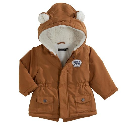 Bébé sera stylé et au chaud cet hiver avec cette parka à capuche ! On aime : la doublure de la capuche en sherpa, bien chaude, et les oreilles fantaisie. Le manteau bébé garçon, entièrement doublé, possède une ouverture zippée, des manches longues et des poches pressionnées. On note le patch sur