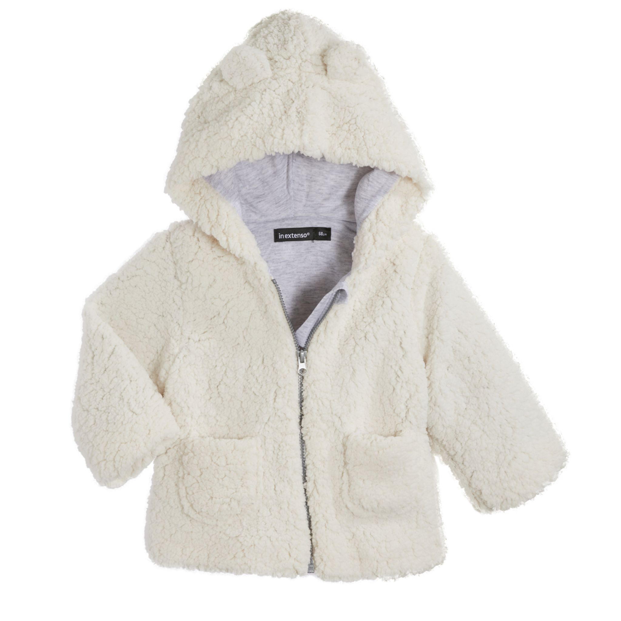 On craque pour ce manteau bébé fille effet peluche mouton ! Il est hyper doux et doublé pour le confort. Le manteau bébé fille possède une capuche ornée d'oreilles fantaisie, une ouverture zippée, des poches et des manches longues.