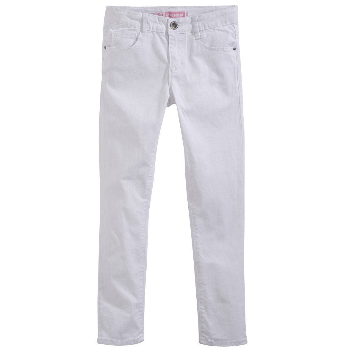 Ce pantalon skinny fille est idéal pour les beaux jours ! On aime : son coloris estival. Matière confortable. Coupe près du corps. Pratique : la taille s'ajuste facilement, de l'intérieur, grâce à un élastique boutonné. Ouverture par bouton et zip. 5 poches. Jeu de surpiqûres. Ce jean blanc fille est lavable en machine à 40°.
