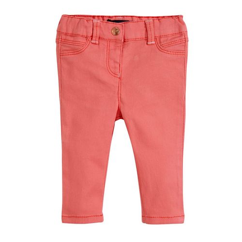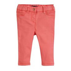 On opte sans hésiter pour ce pantalon slim bébé fille au coloris très estival et gai ! Réalisé en coton stretch, très confortable. Taille ajustable de l'intérieur par élastique et boutons. Ouverture par un bouton-crochet. Imitation poches sur le devant, 2 poches au dos dont 1 ornée d'une parti