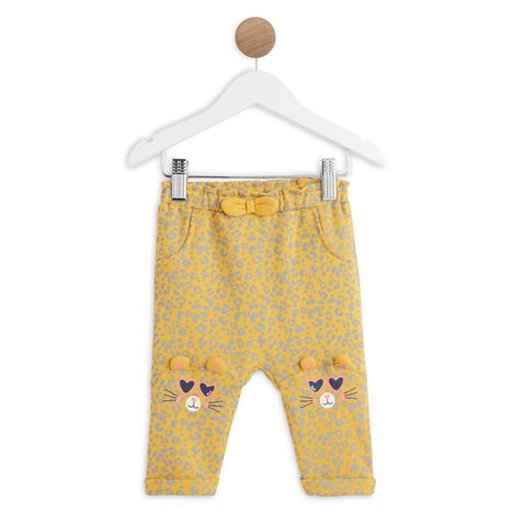 Avec sa coupe sarouel et sa taille élastiquée, ce pantalon en molleton léger enveloppe bébé garçon de confort ! On adore l'imprimé léopard et le motif placé sur les genoux avec petites oreilles en relief !