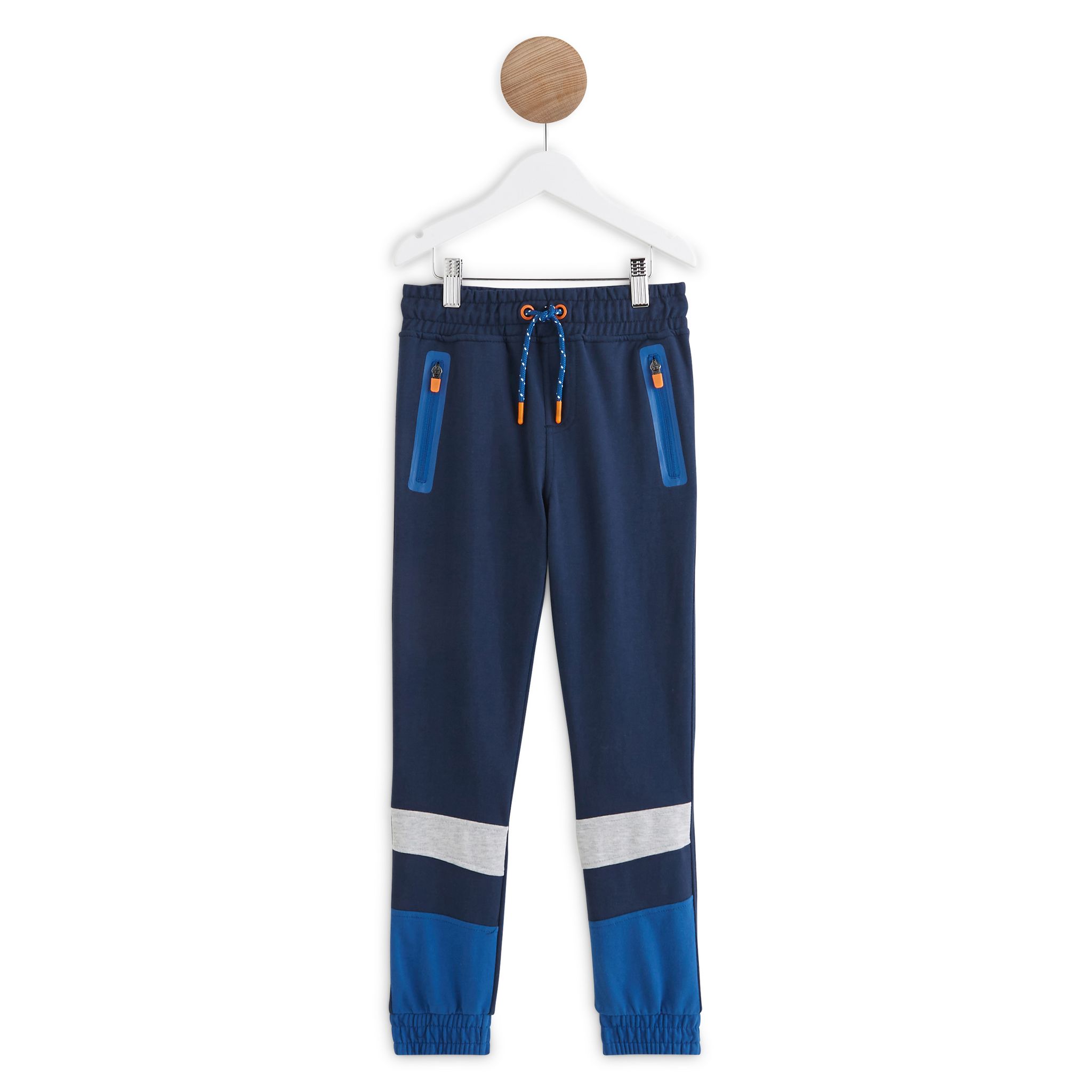En savoir +Avec son molleton doux, ce pantalon de jogging est à la fois confortable et stylé ! On aime les nombreux détails mode : la coupe étroite, les deux poches avec fermeture zippée contrastée et le cordon de serrage. Ce pantalon de jogging possède une taille et des bas de jambes en bords-côtes élastiqués pour un enfilage facile.