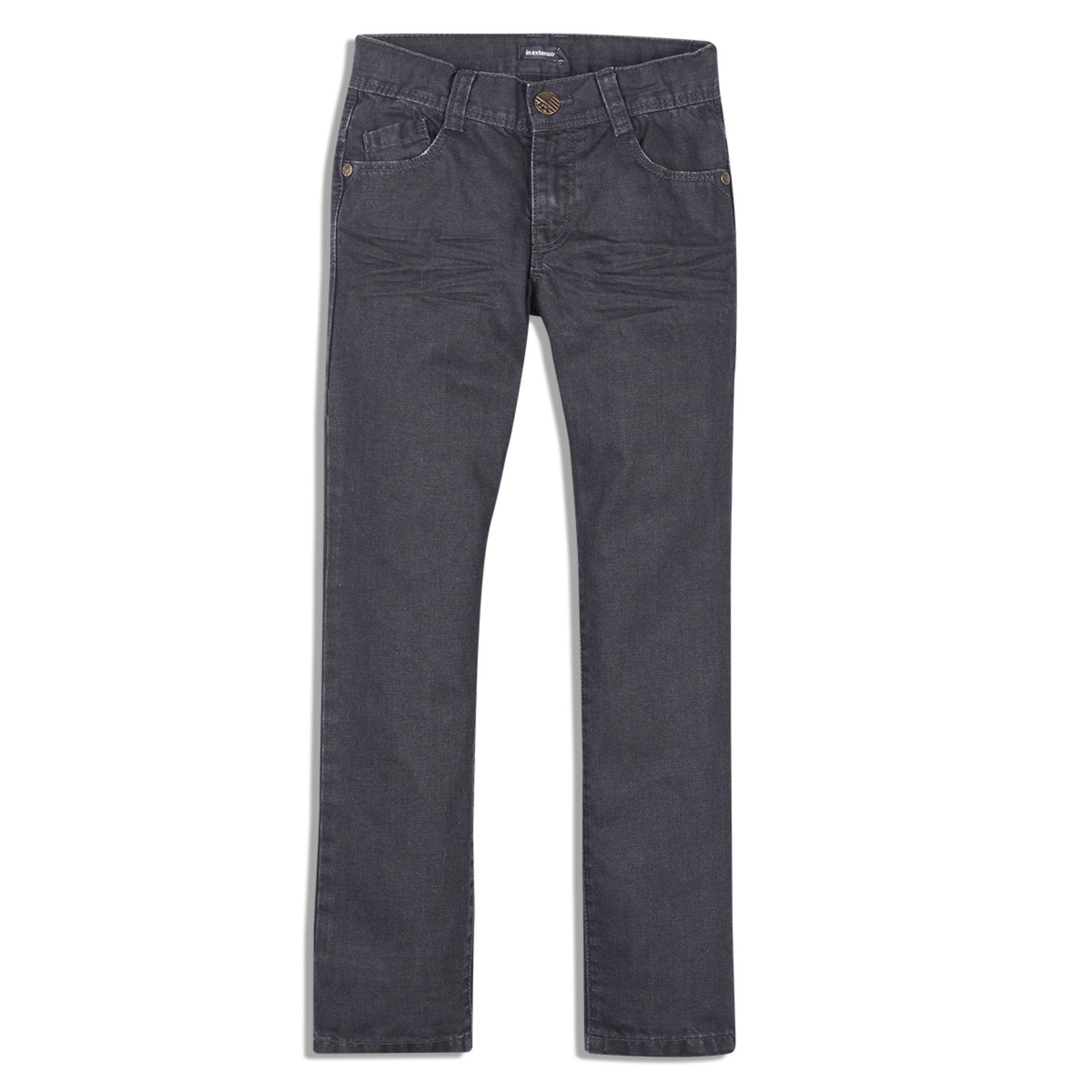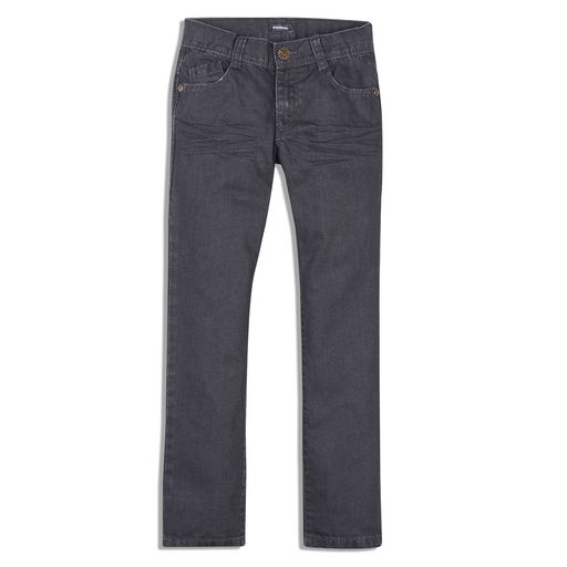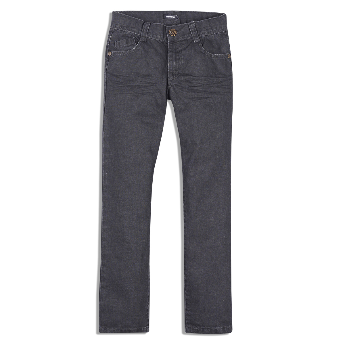 Succès assuré dans la cour de récré pour les garçons qui porteront ce jean enduit noir. Denim 100% coton, confortable. Pratique : ceinture à passants réglable de l’intérieur par élastique et boutons. Ouverture par bouton et zip en métal. 5 poches. Plis permanents sur le devant. Revers de
