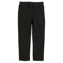 Un pantalon garçon qui s'enfile rapidement, c'est parfait pour l'école ! Agréable à porter. Taille en bords-côtes qui maintient sans serrer, ajustable par cordons. 5 poches. Jeu de surpiqûres. Ce pantalon de garçon est lavable en machine à 40°.