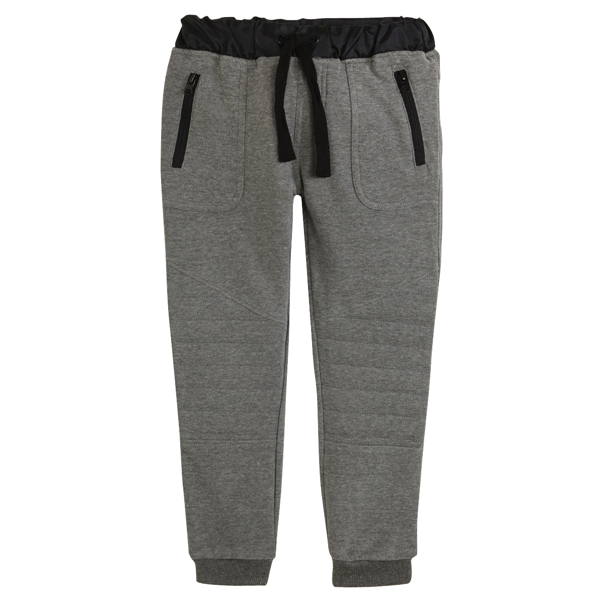 Le style, le confort, les détails… ce pantalon de détente garçon a tout bon ! Réalisé en molleton. Taille élastiquée aspect imperméable, ajustable par un cordon. 2 poches zippées. Empiècements matelassés au niveau des genoux. Bas de jambe resserrés. Jeu de surpiqûres. Ce pantalon en molleton