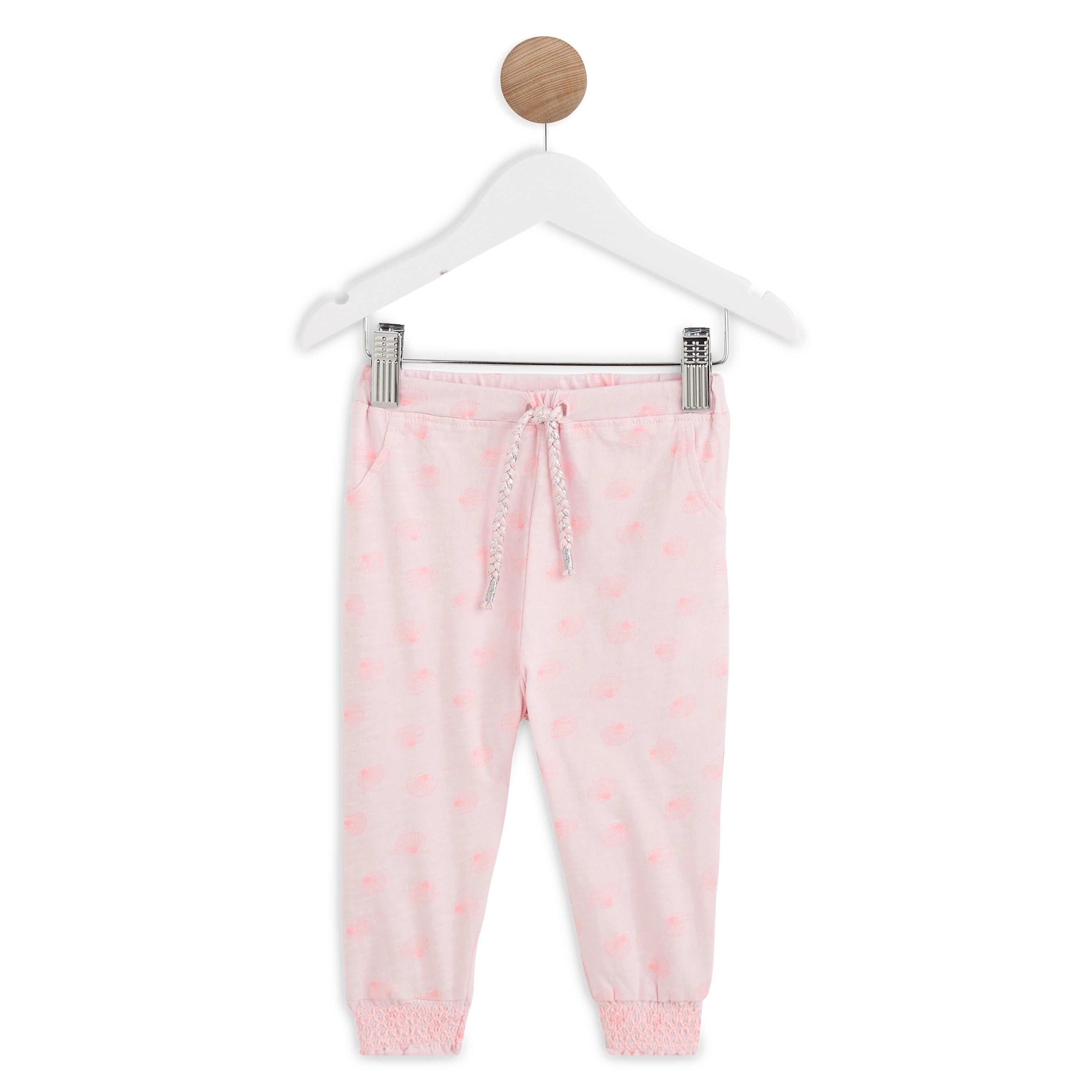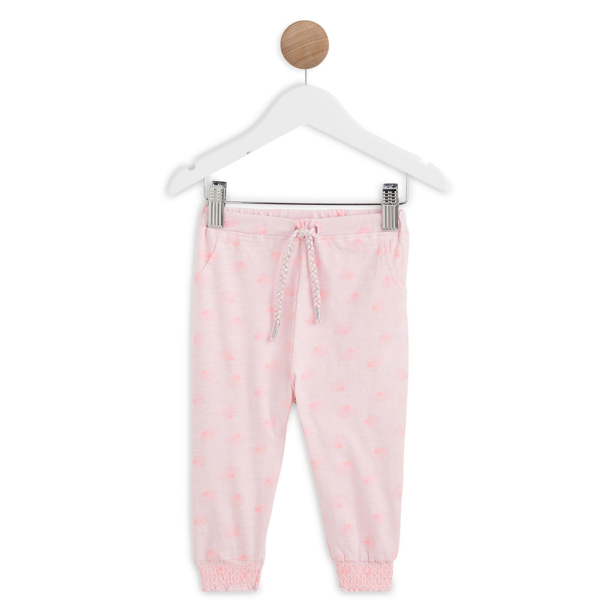 Un pantalon léger en jersey de coton tout doux, idéal pour les premiers mois de votre petite princesse ! La taille élastiquée maintient sans compresser et possède un joli lien de resserrage rose composé de fils argentés pour la touche fantaisie. On craque pour l'imprimé coquillage sur fond rose pâle