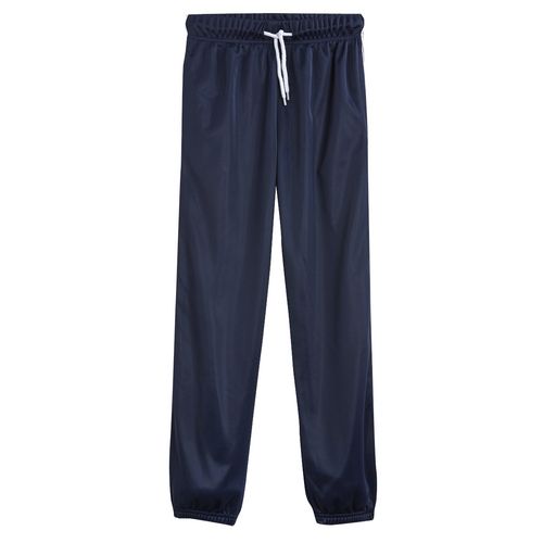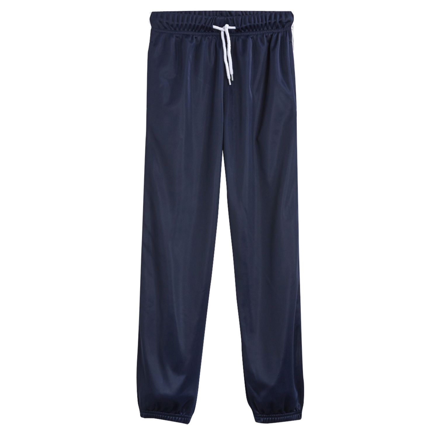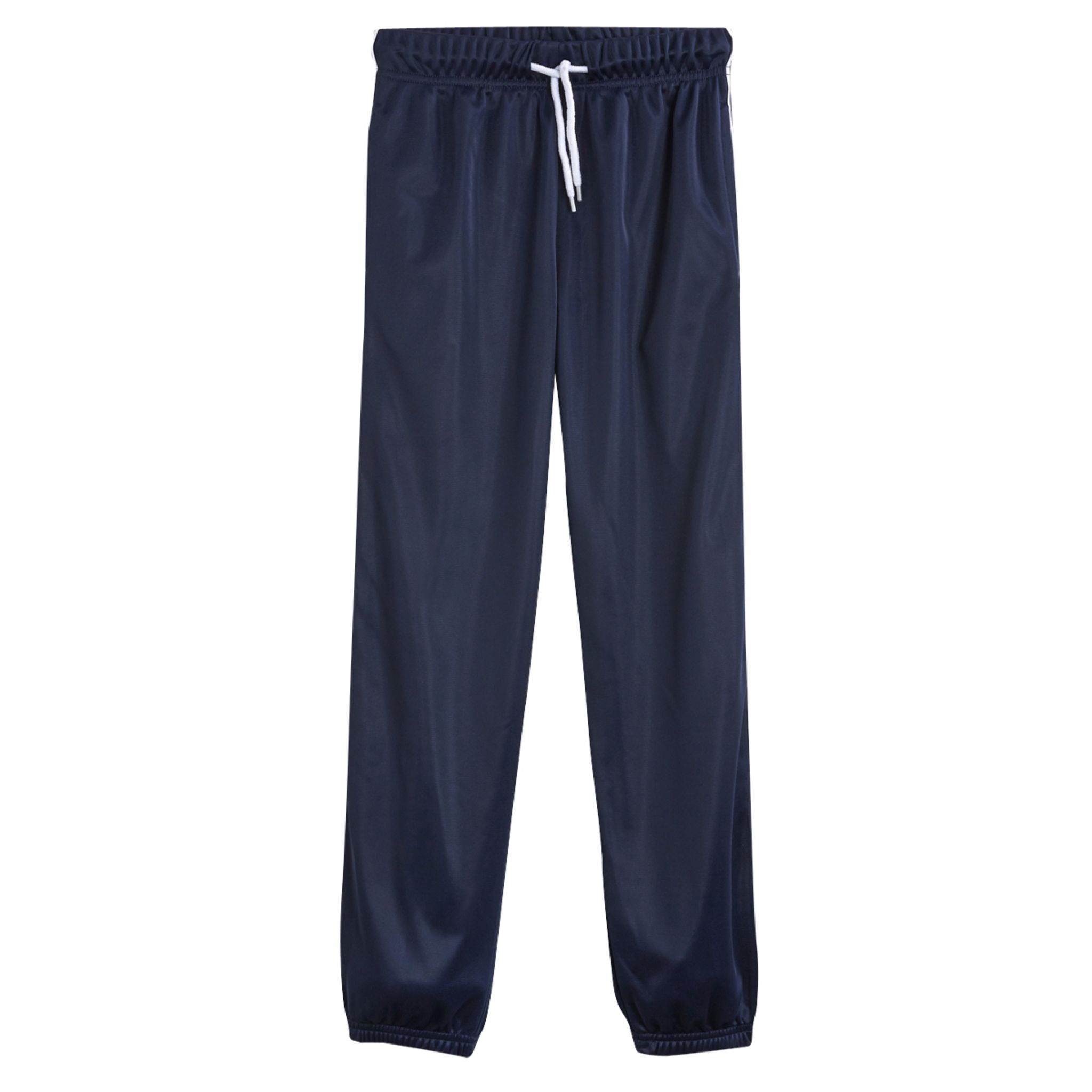 Pour les sports outdoor ou indoor : le pantalon de jogging garçon. Agréable à porter. Intérieur doux et chaud. Taille élastiquée ajustable par un cordon. Lignes contrastées sur les côtés. Bas de jambe élastiqués. Ce pantalon de sport garçon est lavable en machine à 30°.